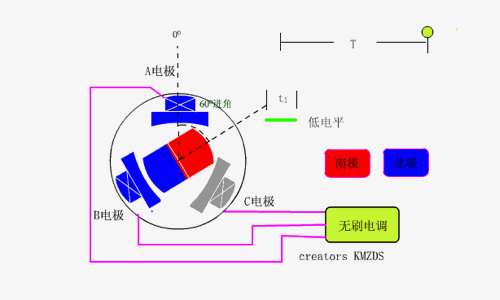 無刷電機的換相原理:無刷電機,是使用一套電子設備,通過霍爾元件,感知永磁體磁極的位置,根據(jù)這種感知,使用電子線路,適時切換線圈中電流的方向,保證產(chǎn)生正確方向的磁力,來驅動電機。
